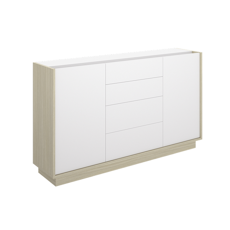 Aparador de estilo moderno en combinación Roble y Blanco con gran capacidad de almacenaje.