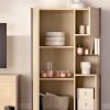Estantería con acabados en roble y grafito, con amplios compartimentos para almacenamiento.