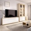 Mueble bajo de salón en acabado blanco con líneas puras y gran capacidad de almacenamiento.