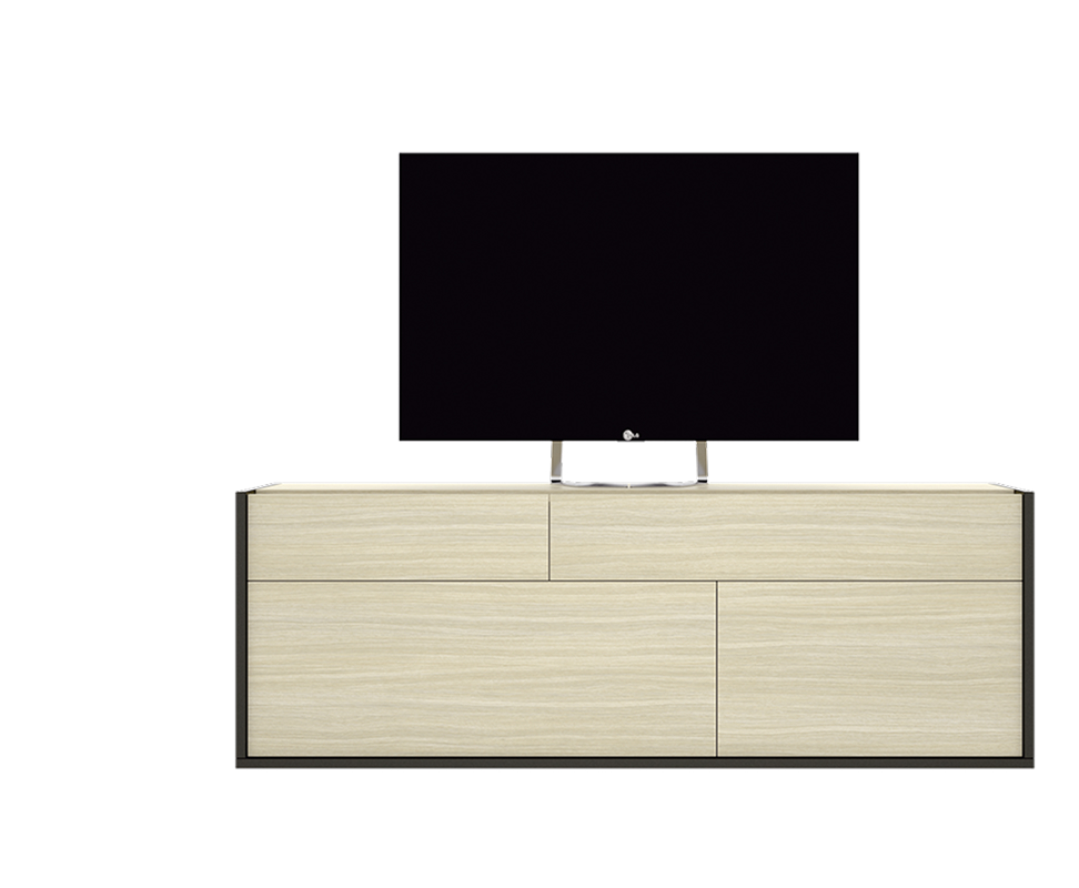 Moderno mueble de TV con acabado en roble y detalles en grafito, ideal para darle un toque elegante y sofisticado a tu espacio.
